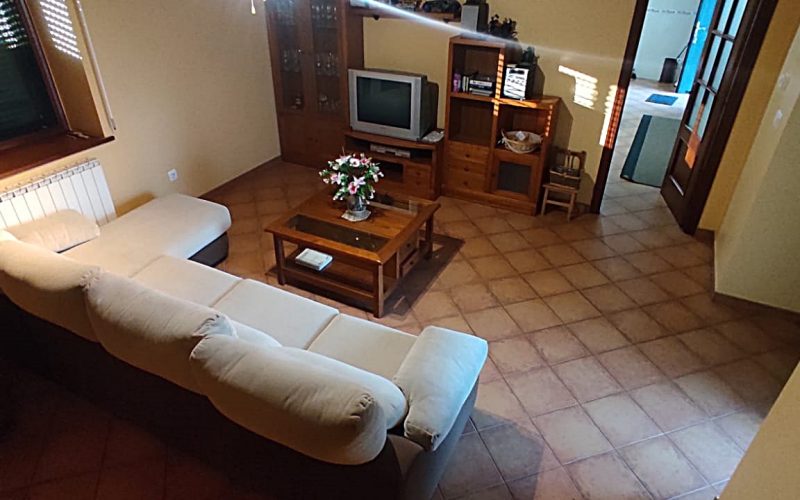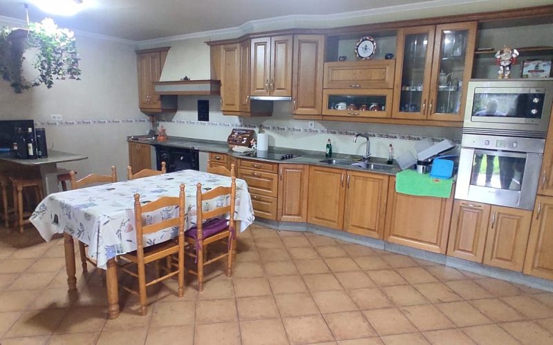 Vivienda unifamiliar de 174 m², situada en una amplia parcela cerrada de 2.150 m². La casa se distribuye en dos plantas, comenzando en la planta baja con una gran cocina-comedor equipada con una acogedora cocina de leña, salón y un baño con plato de ducha. También cuenta con un garaje en esta misma planta.
