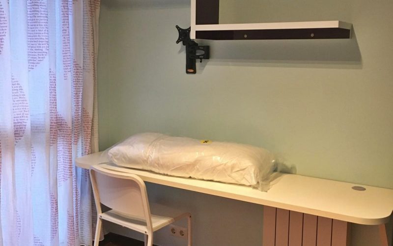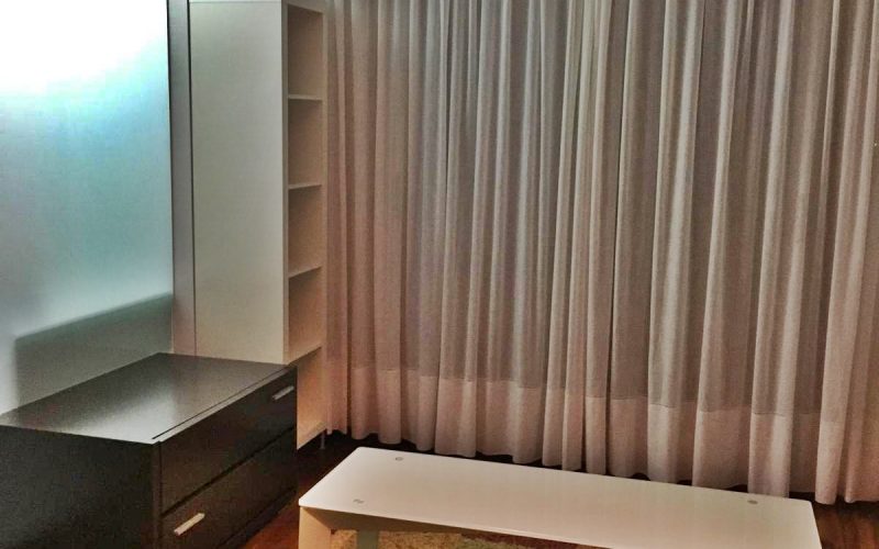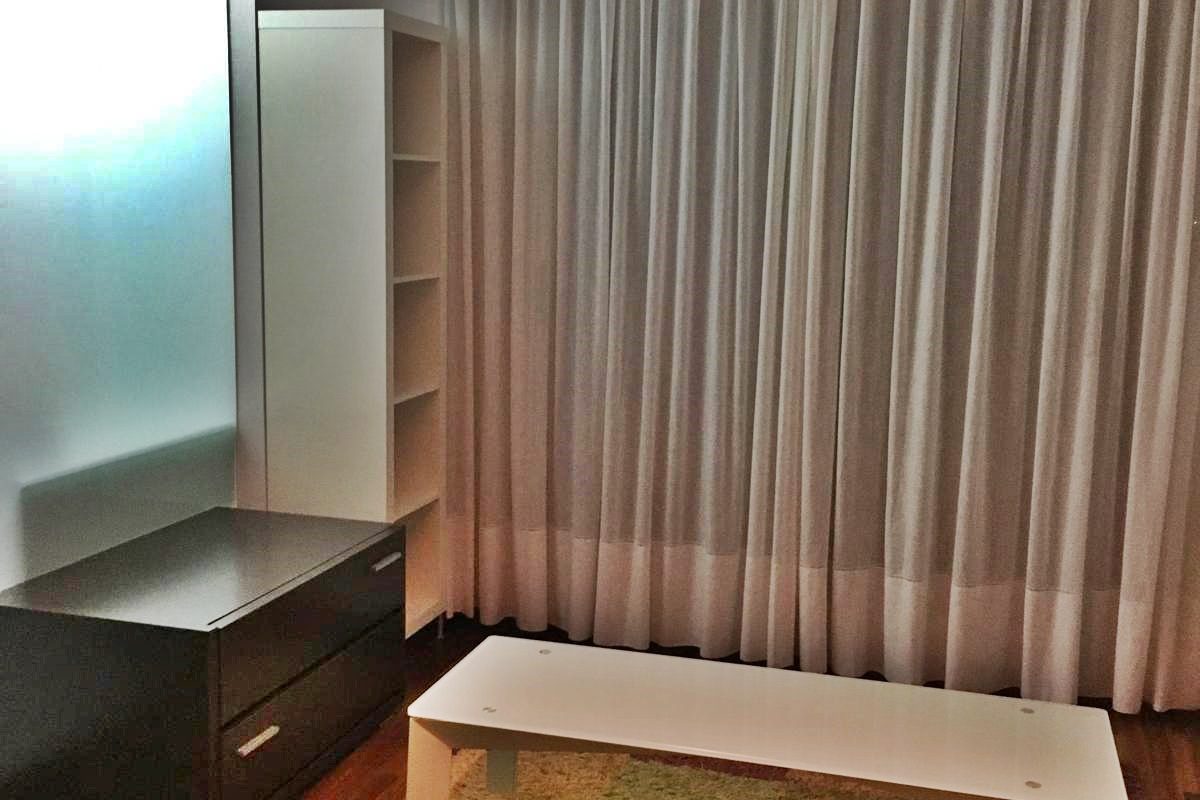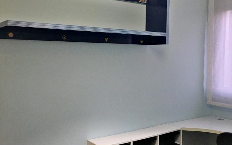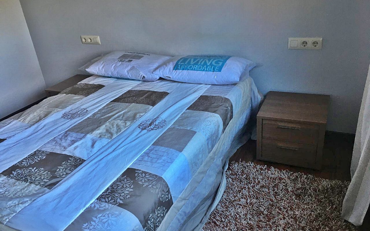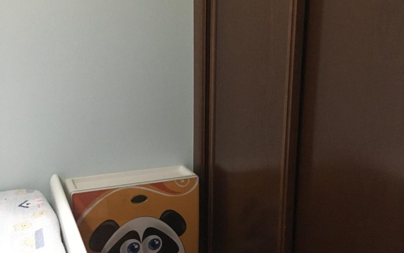 – Armarios forrados y divididos con puertas correderas.