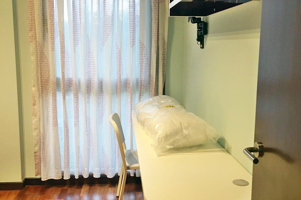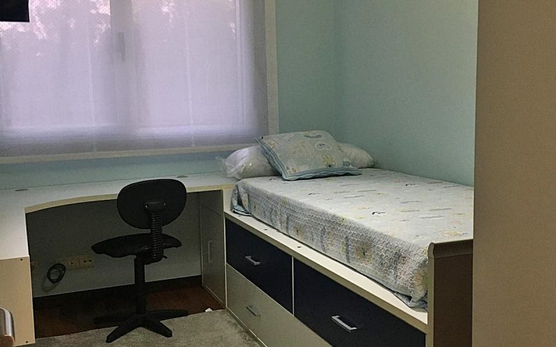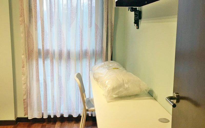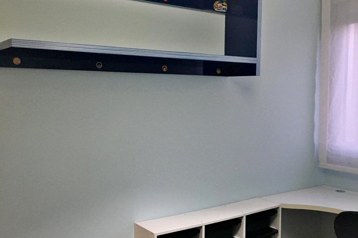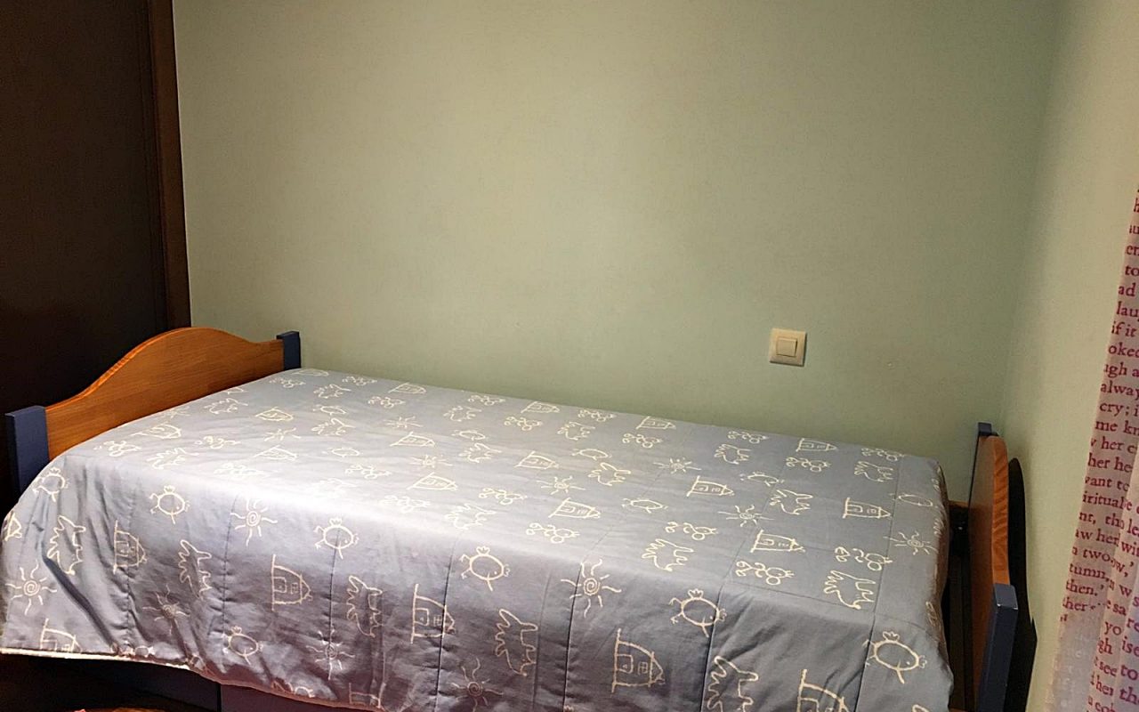 – Armarios forrados y divididos con puertas correderas.