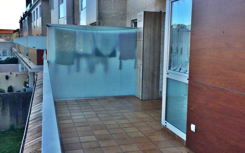 – Tabiques de ladrillo macizo a medio pié, revestido por ambos paramentos con mortero de yeso proyectado, en separación de viviendas y de servicios comunes, de ladrillo H.D. de 8 cm. de espesor revestido por ambos paramentos con mortero de yeso proyectado, en divisiones interiores de viviendas, de ladrillo rústico a cara vista colocado a ½ pié, en zonas definidas en planos y de vidrio stadit dos lunas con butiral blanco.