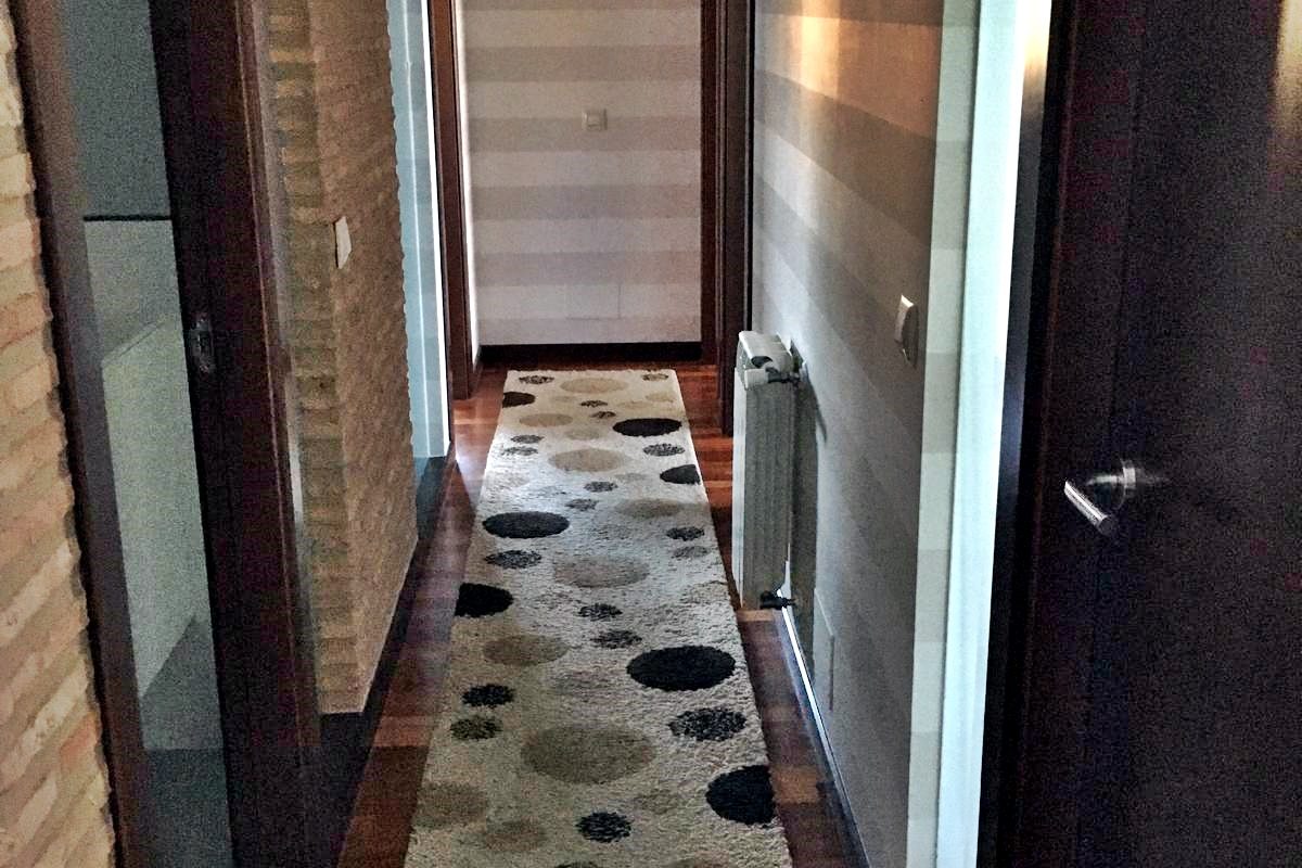 – Parqué flotante de madera de Elondo (tres lamas), acabado en barniz satinado, en dormitorios, salón y pasillo.